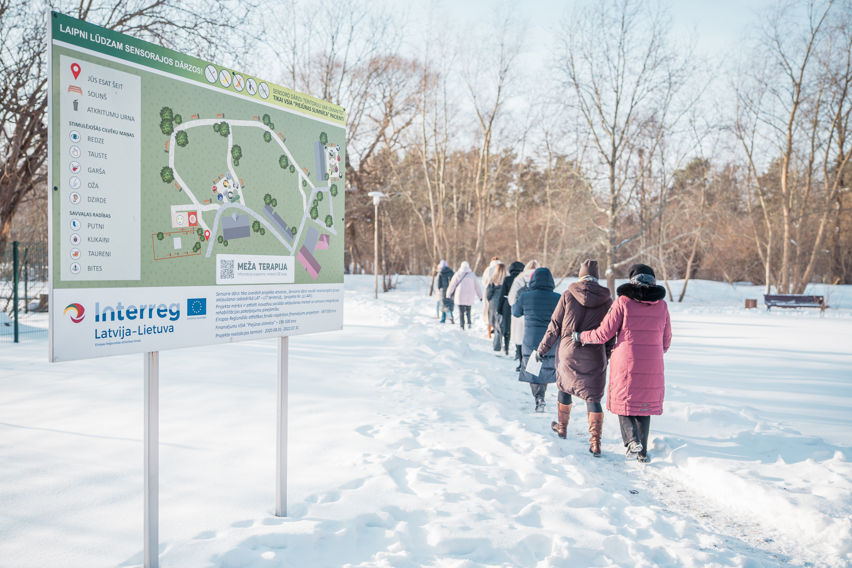Aktivitātes notiek Interreg VI-A Latvijas–Lietuvas programmas 2021-2027 projekta Nr. LL-00120 “Inovatīvas psihosociālās un fiziskās rehabilitācijas metodes stresa mazināšanai, sociāli neaizsargāto personu grupu iekļaušanai sabiedrībā (INO INCLUSION)” (Innovative psychosocial and physical rehabilitation methods for vulnerable people stress overcome towards better social inclusion/(INO INCLUSION) ietvaros. Projekts paredz meža terapijas metodoloģijas izstrādi, speciālistu sagatavošanu, lai nākotnē to varētu izmantot gan speciālisti kopā ar pacientu, gan pacienti patstāvīgi.